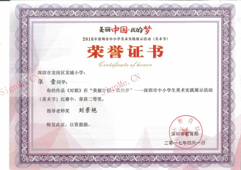 20170401 美丽中国我的梦 深圳市中小学生美术实践展示活动 美术节 二等奖
