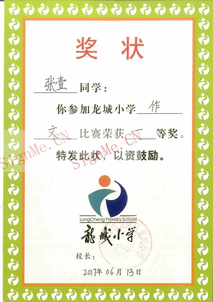 20170613 龙城小学 作文 一等奖