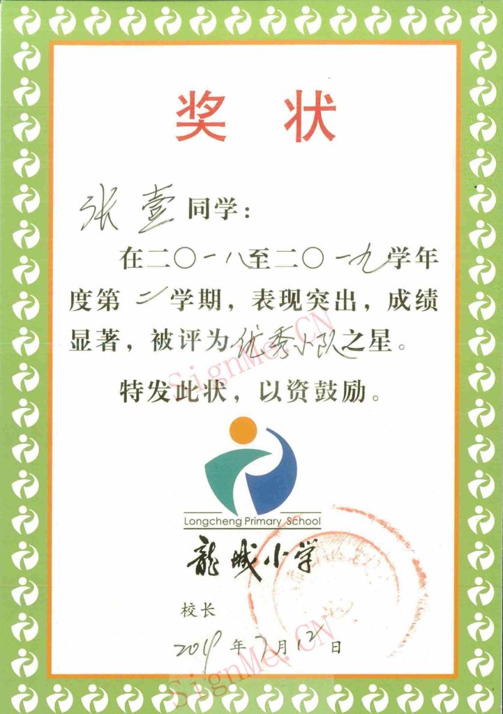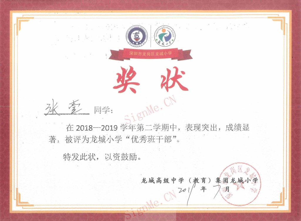 2018-2019 学年第二学期 龙城小学 优秀班干部