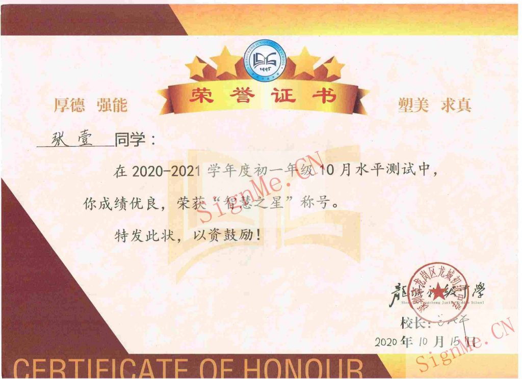 初一年级 10 月水平测试 智慧之星 主办:龙城初级中学书法等级委员会