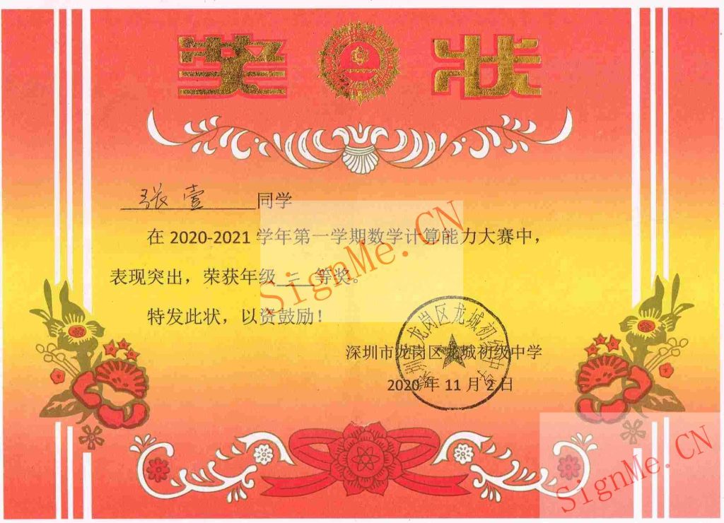 2020-2021 学年第一学期 数学计算能力大赛年级二等奖