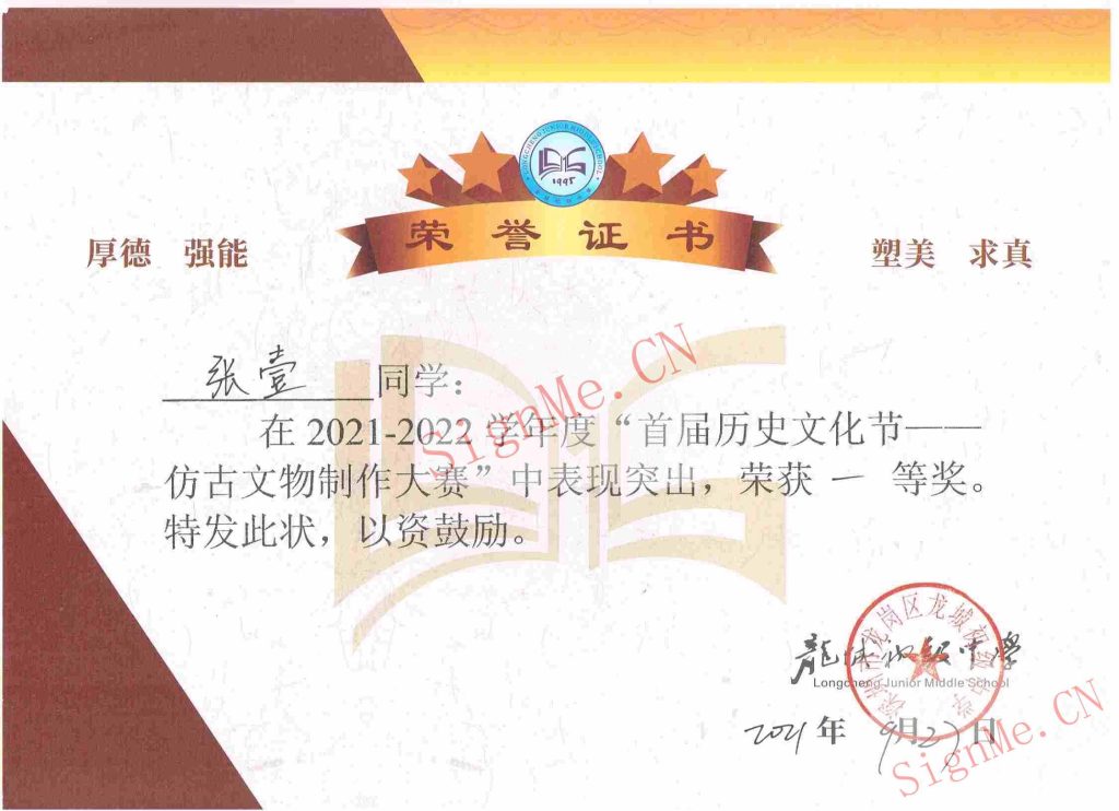 2021-2022 年度 历史文化节仿古文物制作大赛 一等奖